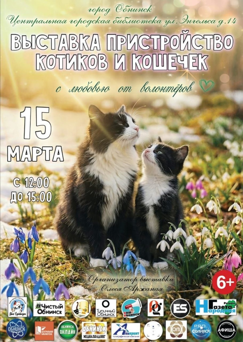 🐱15 марта с 12:00 до 15:00 в Центральной библиотеке в Обнинске пройдёт выставка-пристройство кошек и котят от волонтёров