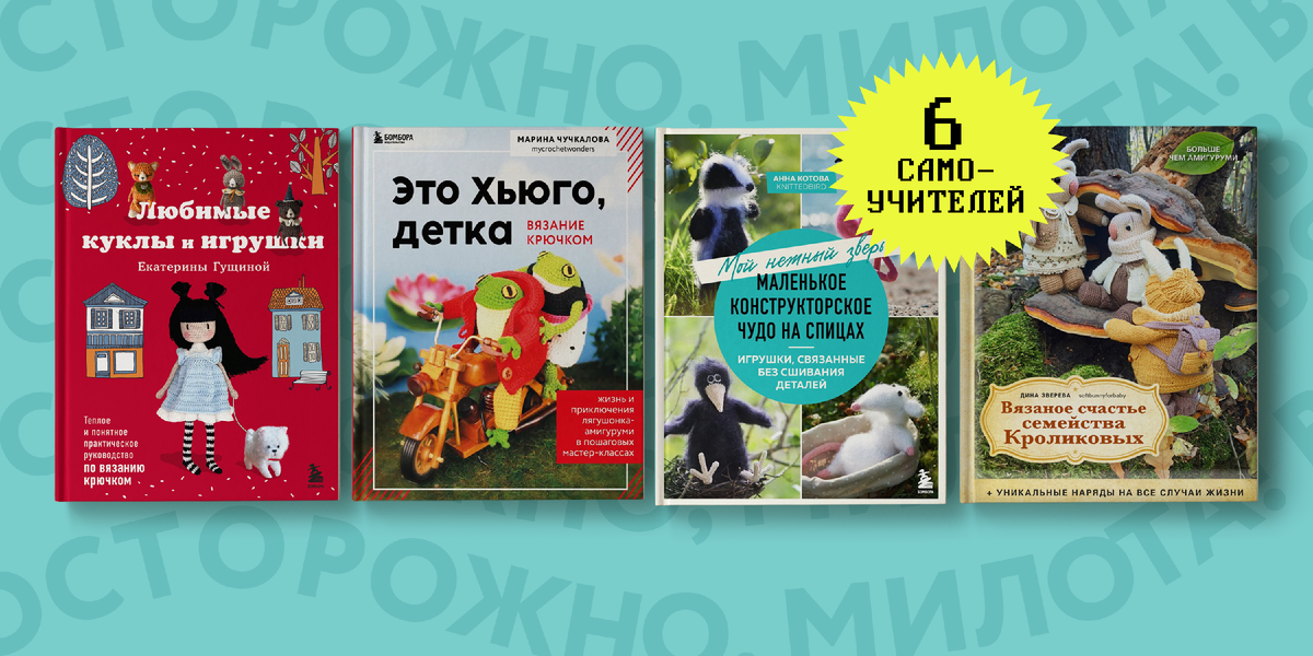 6 самоучителей по вязанию игрушек крючком и на спицах Вязание кукол амигуруми — кавайный тренд, который пришел из Японии и покорил мировые соцсети. От милых зверушек до нежных фей: в стиле амигуруми можно связать любой персонаж. Рассказываем о 15 самоучителях, по которым вы легко смастерите и спортивных гепардов, уютную чету кроликов за чаепитием, и десятки других героев. Екатерина Гущина Еще одна книга Екатерины Гущиной — путешествие в мир тепла, уюта и вдохновения. На страницах книги живут куколки, которые несут дыхание детства; мягкие звери, которых хочется обнимать; и крошечные брошки. C подробными мастер-классами по вязанию кукол, зверей и мини-игрушек вас ждут подсказки по созданию характера; советы по вышивке глазок, тонировке мордочек, созданию причесок; и другие приемы, благодаря которым игрушки выглядят живыми. Дина Зверева Вечером, когда все дела сделаны, а дети уложены спать, наступает время отдыха. На сад опускаются сумерки, мирно стрекочут цикады, в воздухе витает аромат