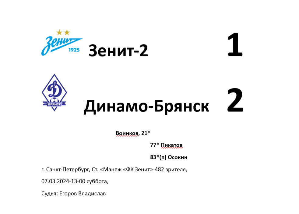 "Зенит-2" проведет первый домашний матч в Серебре с гостями из Брянска в манеже, так как на стадионе "Смена" газон натуральный, а зима в этом году в нашей стране уходить не спешит.