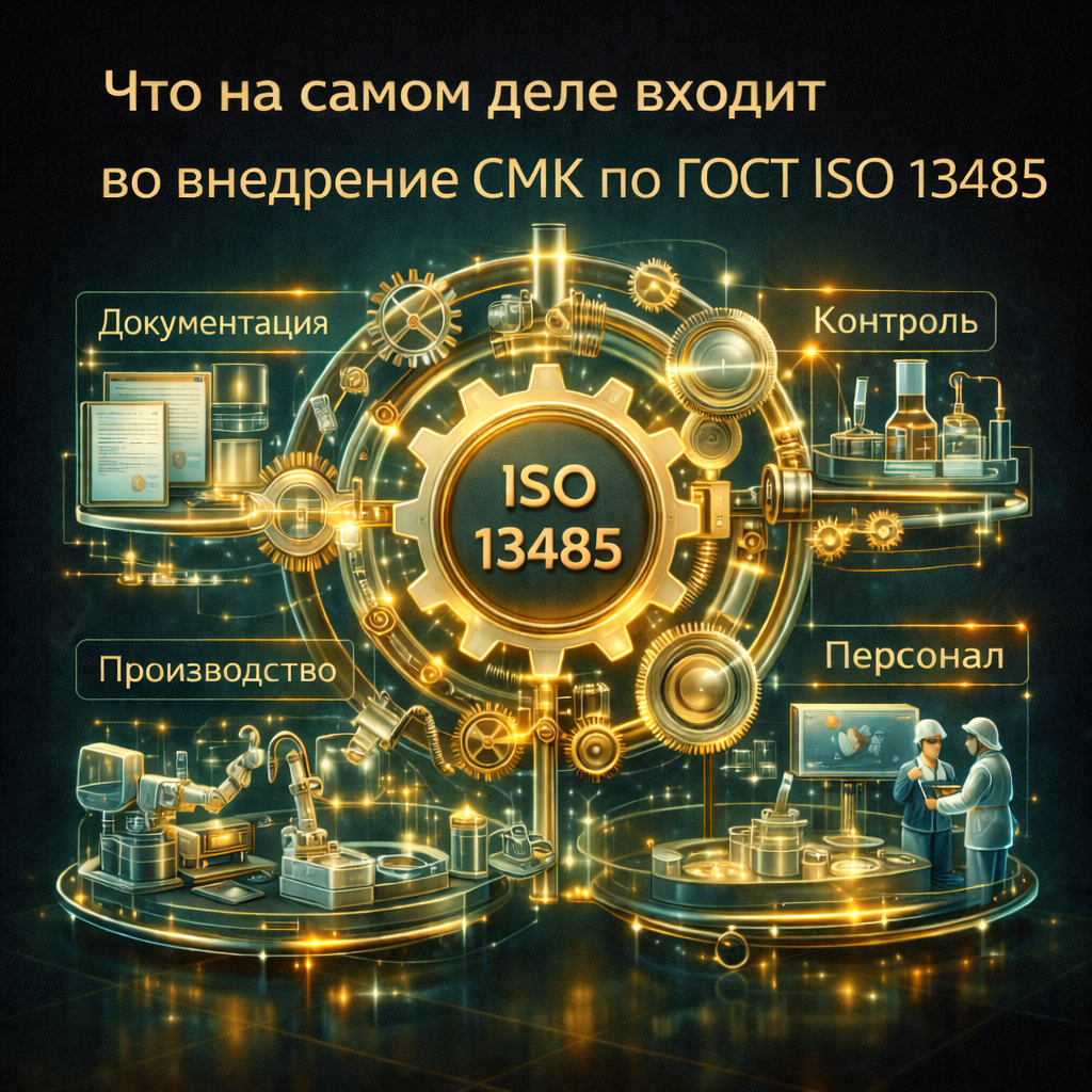 Внедрение системы менеджмента качества по ГОСТ ISO 13485 часто воспринимается как разработка набора документов. Однако сам стандарт рассматривает систему качества как совокупность взаимосвязанных процессов, которые должны обеспечивать безопасность медицинских изделий на всех этапах жизненного цикла — от разработки до выпуска продукции и её обращения. Поэтому внедрение СМК включает не только подготовку документации, но и проверку того, как система реально работает на предприятии. Одним из базовых этапов внедрения СМК является формирование документации системы качества. Стандарт требует, чтобы организация разработала и поддерживала документированные процедуры, инструкции и записи, необходимые для управления процессами производства медицинских изделий. На практике в систему документации входят: — процедуры системы качества;