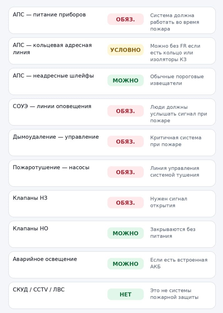 В каких случаях обязательно применения огнестойкого кабеля