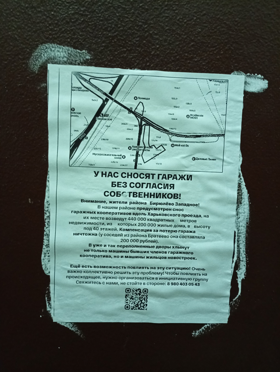 Так вот... Судя по сообщению в листовке, эта же участь – лишиться гаража и заполучить небоскрёбы напротив окон – ждёт теперь жителей Харьковского проезда. Пока есть возможность повлиять на процесс, говорят активисты. И конечно, на него нужно влиять, хотя бы открыто и в рамках закона выражая несогласие.