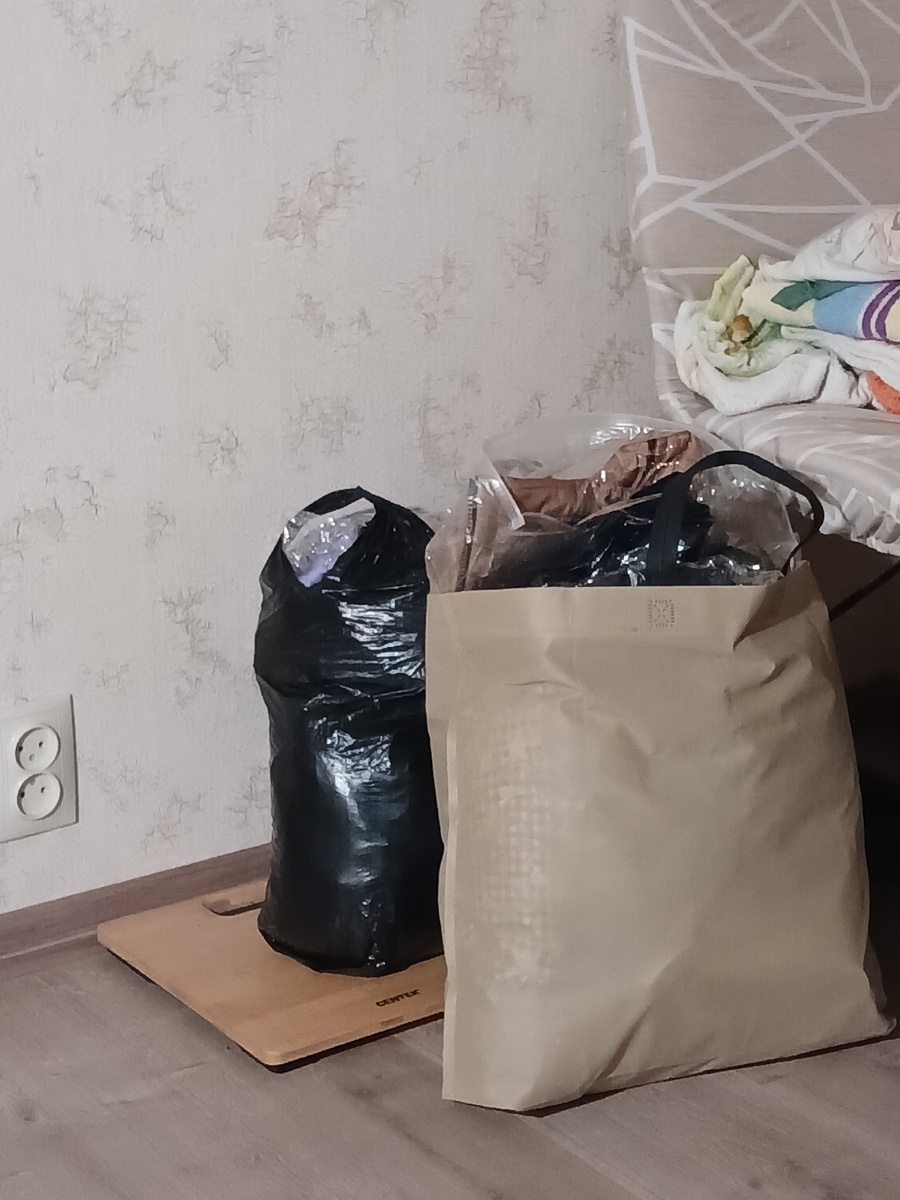 Короче, притащила три пакета. Из обуви взяла только коротенькие резиновые сапоги 38 размера. Думаю, они скоро будут актуальны )). Остальная обувь была в основном белые несуразные кроссовки плохого качества.