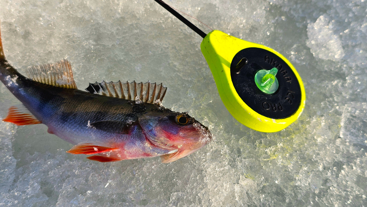 Предполагал, что здесь не будет "семечек", но ошибся. До 7 метров попадались окушки по 10-15 шт из лунки. На 8 метрах изредка 1-2. Меняю блесны. На "листики" семечки клюют лучше, чем на "гвоздики".