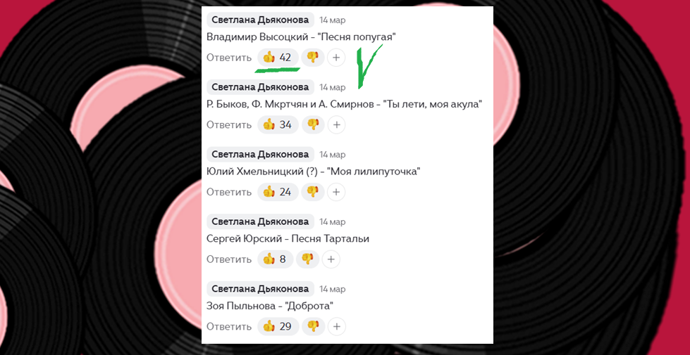 Первый тур, седьмая группа. Продолжаем наш конкурс волшебных песен. Здравствуйте! Сейчас идёт первый тур, а во второй войдут те произведения, которые заработают более 40 голосов за три дня. У нас готовы результаты голосования по пятой группе: Это значит, что во второй тур из этой группы песен проходит "Песня Попугая" в исполнении Владимира Высоцкого. И мы продолжаем проект. Колыбельная из фильма "Сказка о звёздном мальчике", 1984 г. Музыка - Алексей Рыбников, текст - Уильям Блейк, перевод - Самуил Маршак. Исполнители - Валентина Игнатьева и ансамбль "Гистрионы". Об этих таинственных Гистрионах мне разузнать, увы, ничего не удалось, весь поиск забит современной группой с тем же названием, так что если кто-то из музыкальных эрудитов что-то о них может поведать, буду очень признателен. Сам фильм мне, что называется, не зашёл - и первоисточник-то не из числа моих любимых, а уж Нечаев с Веткиной как-то чересчур заигрались, намешав всего, не взбалтывая. Но саундтрек могу слушать бесконечн