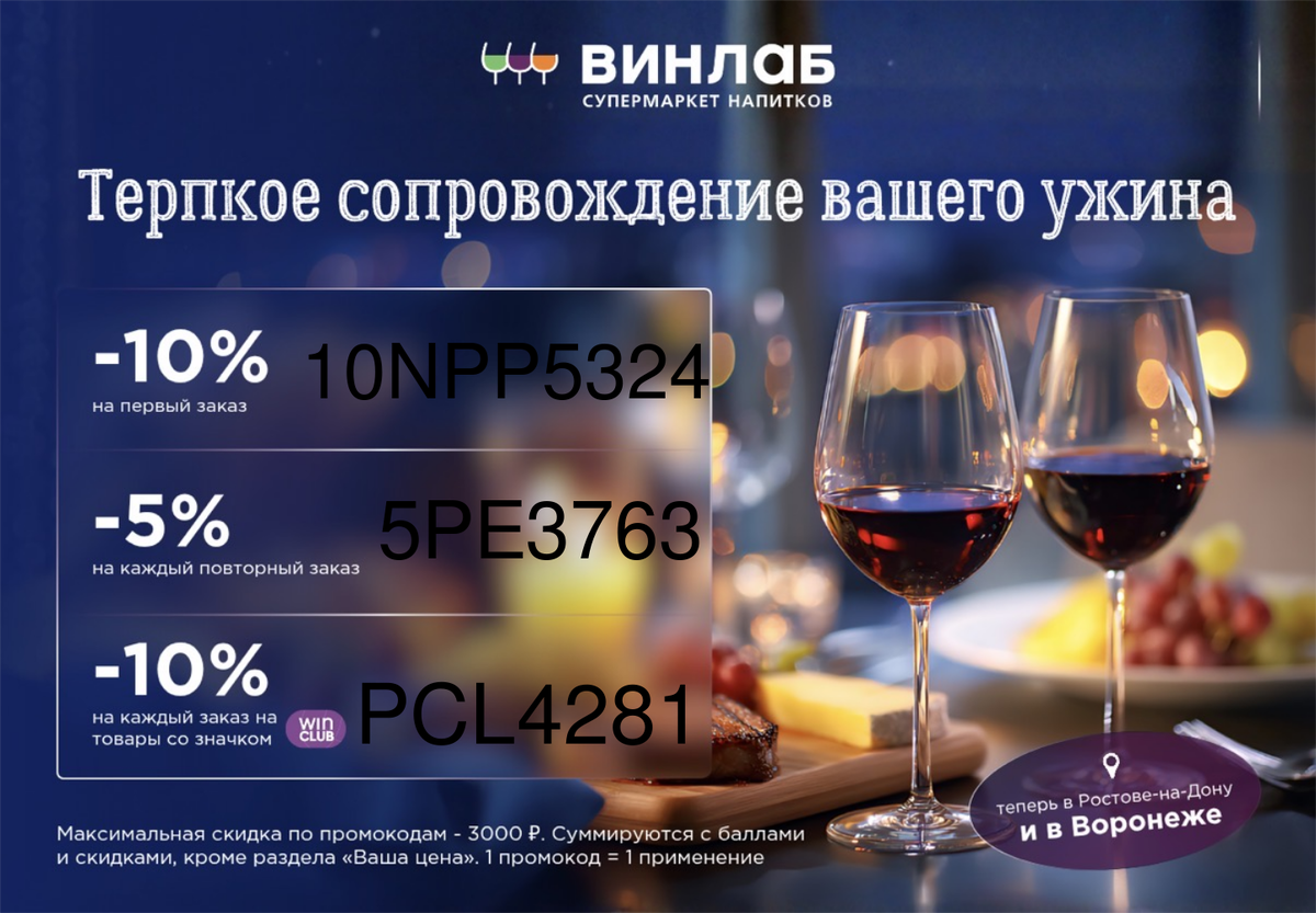 В ВинЛаб можно найти шампанское на любой вкус и воспользоваться промокодами: