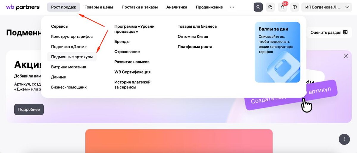 🎯 ▪️ Вайлберриз выкатил реально годный инструмент — подменные артикулы. И, что самое приятное, насыпал каждому по 10 бесплатных генераций (даже если у вас нет «Джема» или платных подписок). ▪️ В чем соль и нафига это нужно? Если вы до сих пор закупаете рекламу у блогеров или льете трафик из соцсетей «на авось», поздравляю — теперь можно это делать разумно. Подменный артикул позволяет четко отследить эффективность каждого рекламного касания. ▪️ Как это работает (смотрите скрины в карусели): ▪️ Заходим в раздел «Рост продаж» -> «Подменные артикулы». ▪️ Генерируем уникальный артикул под конкретную задачу. ▪️ Например, как на моем примере: создали подменник чисто под TikTok. ▪️ Отдаем этот артикул блогеру. ▪️ Результат: В кабинете вы увидите чистую аналитику именно по этому каналу. Сколько было переходов, добавлений в корзину и реальных заказов. Больше никаких гаданий на кофейной гуще в духе «ну, вроде после интеграции заказы пошли». ▪️ Мой вердикт: С точки зрения маркетинга — эт