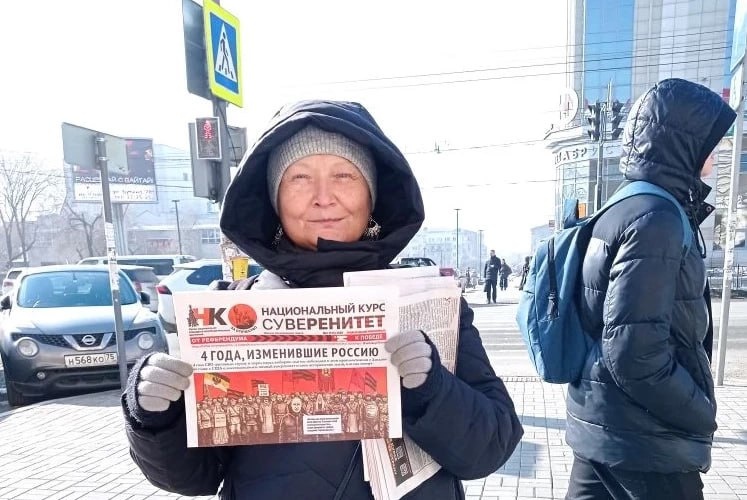 10.03.2026 года в городе Чите, на улице Ленина штабом Национально - Освободительного Движения проводилась раздача газет < Национальный курс