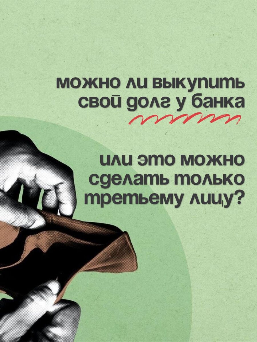 ? Ошибка тут в самой постановке вопроса - свой долг у банка должник выкупить по закону не может. Ведь раз у гражданина нет денег и он платить по своим долгам не в состоянии, с чего бы это ему закон позволял выкупать свои же долги? Но закон, а точнее Гражданский кодекс РФ позволяет банкам уступать кредитные задолженности третьим лицам по договору цессии. ✅ В качестве третьего лица долги банков могут выкупать как юридические лица (коллекторские агентства, индивидуальные предприниматели), так и обычные граждане. 👉🏼 Причём закон не запрещает выкупать долги у банков вполне доверенным и близким для должников людям, как то - родственникам, друзьям, коллегам по работе. #выкуп_долга Подписывайтесь 👇🏼 ___________ Мы в ДЗЕН