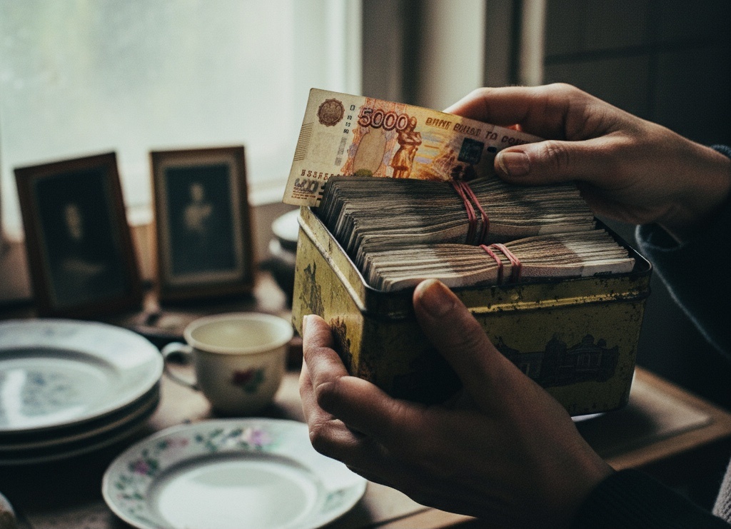 Я вытерла лицо рукавом домашней кофты и пошла на кухню. Мама сидела у окна. На столе — старая жестяная банка из-под печенья. Та самая, где обычно хранились пуговицы, иголки и сломанные заколки. Но сегодня из неё торчали пачки денег. Пятитысячные. Перетянутые банковской резинкой.