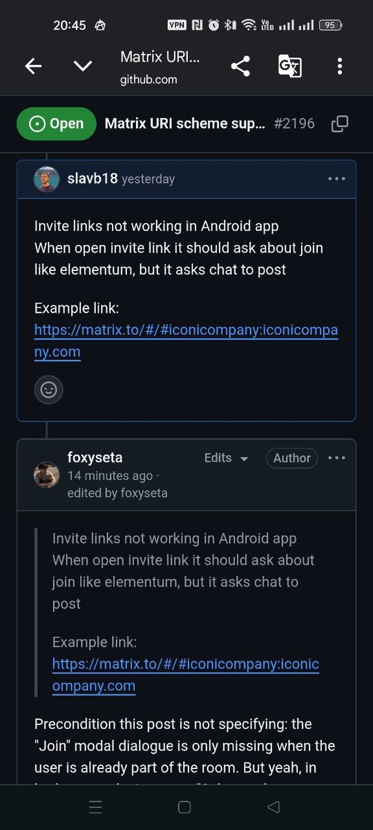 В ходе тестирования клиента Matrix (Fluffy chat) обнаружили баг - при открытии invite ссылки на канал вылазит окно "поделиться".