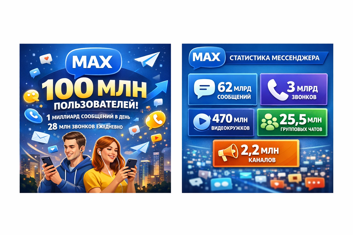 Национальный мессенджер MAX преодолел рубеж в 100 млн зарегистрированных пользователей. Ежедневно в приложении отправляется более 1 млрд сообщений и совершается около 28 млн звонков, сообщает VK. С момента запуска пользователи отправили уже 62 млрд сообщений и совершили свыше 3 млрд звонков. Также было записано и отправлено 470 млн видеокружков, а количество групповых чатов достигло 25,5 млн. Кроме того, авторы, блогеры, пользователи и компании создали 2,2 млн публичных и приватных каналов.