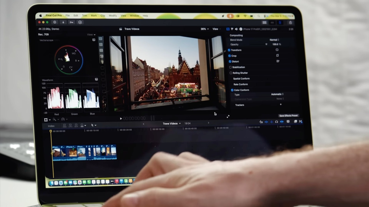 В преддверии начала отгрузок MacBook Neo блогеры и издания выходят со своими обзорами новинки. Мы успели посмотреть уже несколько из них и в целом все авторы сходятся в главном: машинка не ощущается дешевой, отлично отрабатывает даже сложные задачи, а условные недостатки — физическую конструкцию тачпада и отсутствие Touch ID в младшей версии — заметят только те, кто уже успел поработать с другими Маками. Крайне показательное видео публикует Тайлер Столман, который взялся на машине не просто фоточки смотреть, но монтировать видео и обрабатывать снимки с разрешением до 100МП. И внезапно оказалось, что ноутбук без проблем справляется с монтажом 4K-видео в Final Cut Pro даже при одновременной работе всех системных приложений. Воспроизведение таймлайна с наложением роликов в разрешениях 4K и 6K, применением цветокоррекции и переходов проходит плавно в режиме «лучшая производительность». Только при включении режима «лучшее качество» с множественными слоями и эффектами система начинает подт