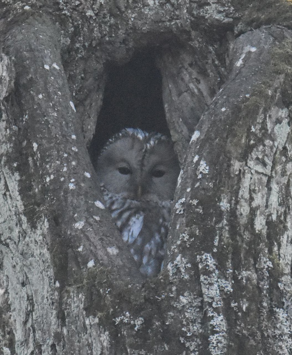 В 2024 году их было 5 штук в ЦПКиО, можно было в любой день приехать и пофоткать. В нынешнем году совы - дефицит, даже ушастые в ЮПП не каждый раз мне находятся. А длиннохвостая неясыть вообще первая в этом году. Помогли найти мне её вороны (как обычно): иду, смотрю кого-то погнали к соседнему дереву. Успела заметить что-то полосатое. Вначале подумала, что наверное тетеревятник или перепелятник, но смотрю птицы на дереве нет, а вороны улетели. Кто в курсе, тетеревятника вороны преследуют и гоняют долго. Смотрю на дерево, в сторону которого полетел полосатик, а в нём дупло. Понимаю, что сова, осталось дождаться когда мордочку покажет и тогда определимся какая. Ну, вот собственно и недовольная мордочка на фотографии. Дерево стоит против солнца, особо к нему не подойдёшь, поэтому как смог... 🤷♀😁 #птицы #ДлиннохвостаяНеясыть #УральскаяНеясыть