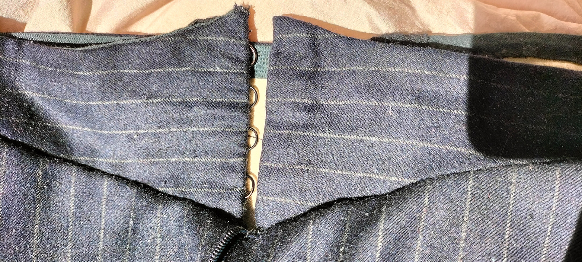 Обнаружила, что я, оказывается, не дошила застёжку юбки, - не пришила крючки и петли на пояс-кокетку. Редко пишу о внутренней кухни шитья и показываю изнанку. Изнанка моих вещей не самая идеальная, да и большинству читателей интереснее увидеть готовый результат, чем процессы. Вдобавок, после того, как сошьёшь, уже детали рассказывать обычно не охота и не так интересно (они интереснее в процессе поиска решения и шитья). Кокетка дублирована (сшита вместе с вторым слоем ткани) хлопка из Трёхгорки из запасов, остатков. "Лишнее" от исходной кокетки я не отрезала, оставила как есть (сниму выкройку, возможно на будущее захочется скроить по-другому или целую съёмную кокетку). Срезу обработала покупной косой бейкой из остатков, как и верхний края пояса, где-то допришила вручную. Крючки и петли пришила ручными швами, затем сверху пришла вручную два ряда лент (одной подходящей более широкой ленты не было), чтобы было красиво и аккуратно, заодно было дополнительно укреплено место застёжк