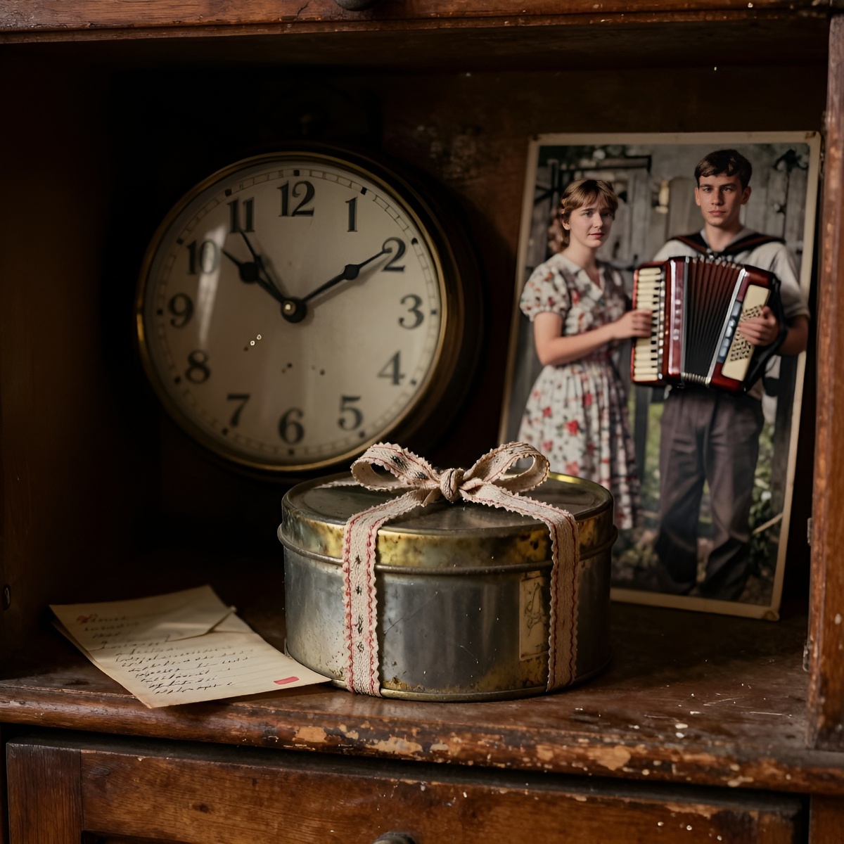 Я собралась в дорогу внезапно — как будто кто-то тихо толкнул в плечо, не давая отложить на «потом». Вечером на кухне, под ровное тиканье часов, я достала из серванта старую жестяную коробку из-под карамели. В ней лежали письма, перемотанные выцветшей тесьмой, и фотография: я — тоненькая, в ситцевом платье, у калитки; рядом — парень с гармошкой, улыбка дерзкая, глаза светлые, будто и не знали еще, что бывает на душе у взрослого человека.