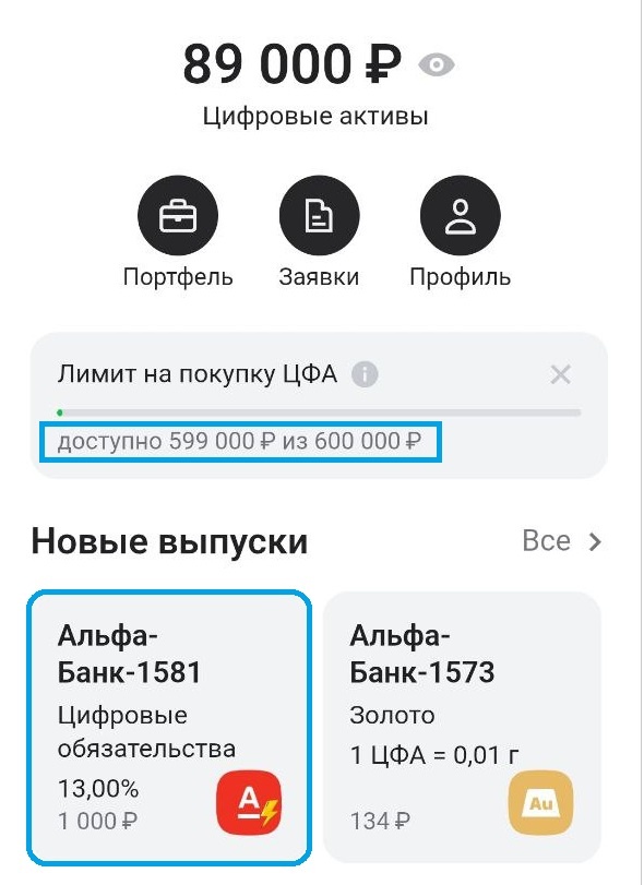 Начну свой рассказ с того, что овернайт ЦФА от Альфа-банка не являются моей целью, но так получилось, что я покупаю их каждый день... Рассказываю по порядку. Овернайт - это займ на одну ночь. Подобные вещи практикует не только Альфа, например, у ВТБ-Инвестиций есть овернайт облигации на один день. То есть Альфе и ВТБ не хватает своей ликвидности, вот они и берут ее у своих клиентов под процент. И смысл у ВТБ и Альфы примерно один и тот же, сегодня размещаешь деньги, завтра получаешь их назад и небольшой доход с них. То есть это парковка для кэша на небольшой срок. Доход действительно не большой потому, что ставка всего 13%, а в рублях это 1000х0,13х0,87/365=0,30 рублей за день с 1 ЦФА! Приятный момент: для неквалифицированных инвесторов есть ограничения на объем инвестиций в ЦФА за год, но овернайт выпуски не учитываются. Получаются, что эти ЦФА идут вне зачета. Я их покупаю каждый день, а приложение считает, что в этом году я купила всего 1 ЦФА. Ну и самое главное, я хотела реинвестир