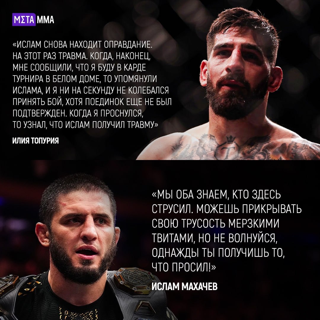 Белом доме за день до официального объявления карда. Боец обвинил россиянина в поисках оправданий и назвал травму предлогом для отказа Ответ Ислама не заставил себя долго ждать. 👊 Подпишись на Meta MMA | Meta MMA в MAX | Наш канал в ВК