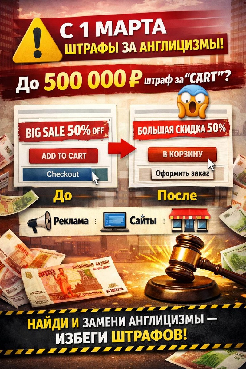 ⚠️ С 1 марта бизнес могут штрафовать за английские слова в рекламе и на сайте