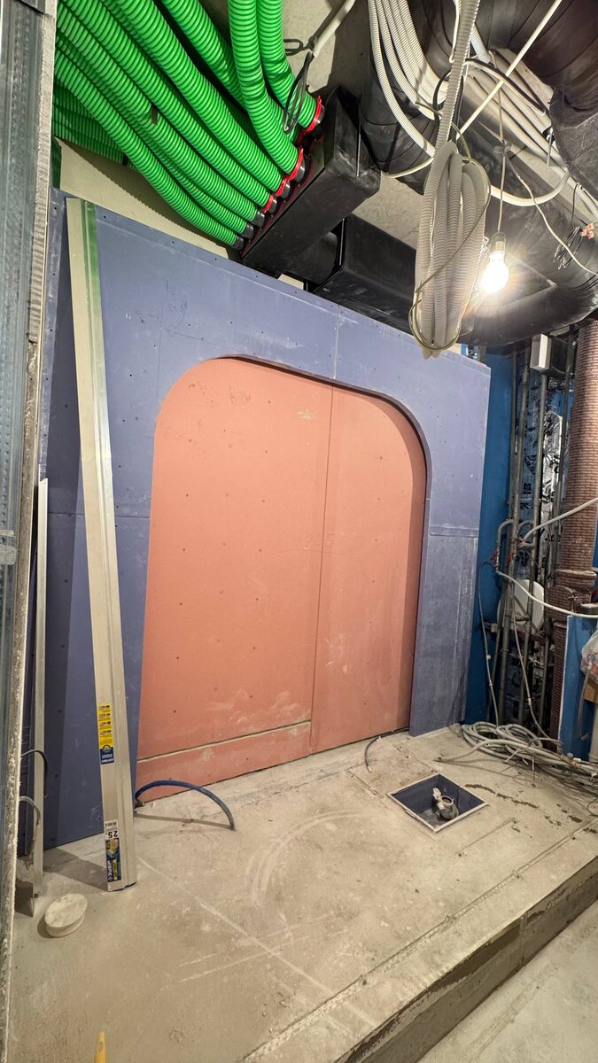 Так вот, уже выстраивается ниша под гипсовое панно с подсветкой и сделан подиум для постановки отдельностоящей ванны🛁