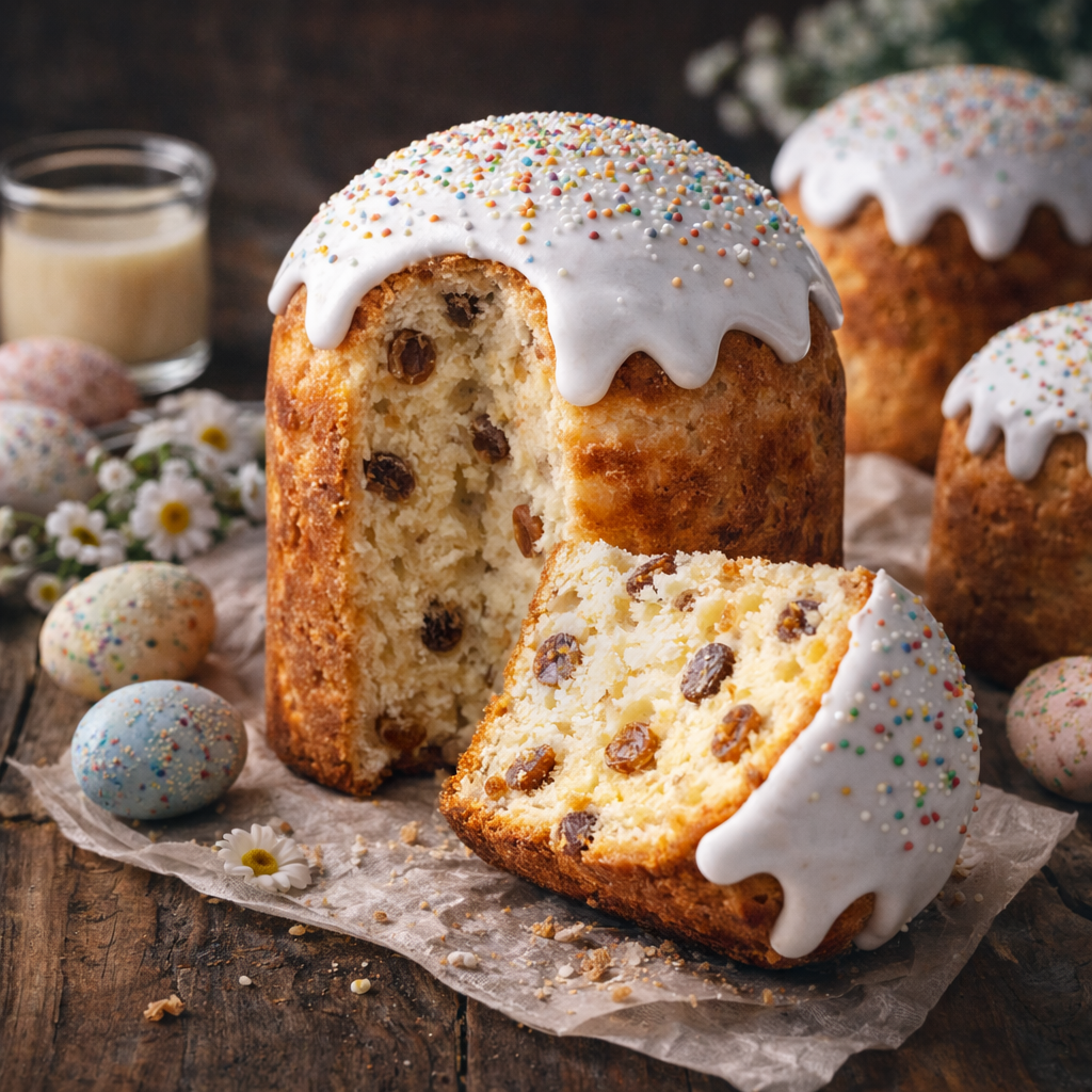 Этот рецепт ценят за простоту и скорость. Тесто готовится буквально за несколько минут, а выпечка занимает около получаса. В итоге получается мягкий, ароматный и очень нежный кулич.