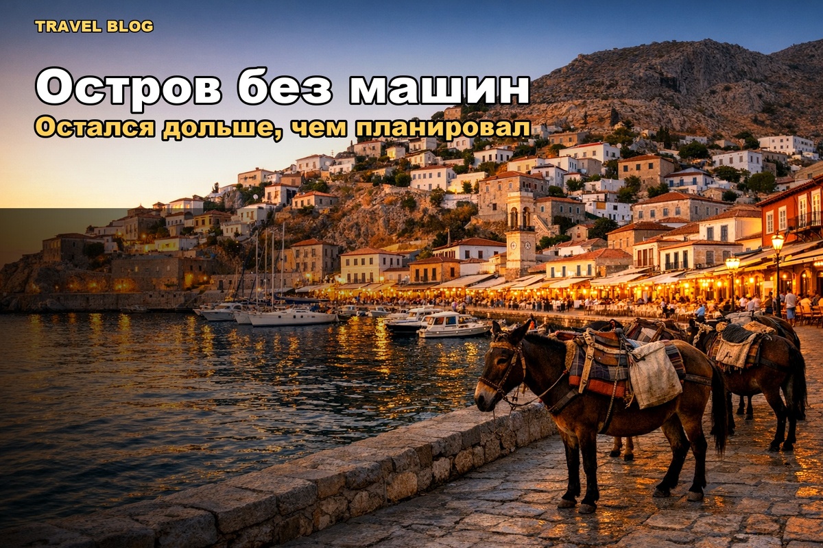 Про какой остров речь. В Греции есть несколько мест, где автомобили либо запрещены, либо их почти нет (всё решают запреты, узкие улочки и местные правила). Я говорю про Гидру (Hydra) — это один из самых известных «безмашинных» островов недалеко от Афин. Там разрешены только ослы, муллы, тележки и лодки. Звучит романтично, но на практике это ещё и про лестницы, подъёмы и тот самый момент, когда ты понимаешь: чемодан на колёсиках — зло.