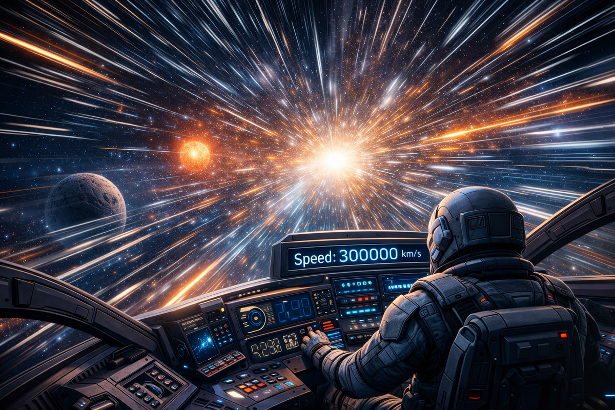 Представьте: вы садитесь в космический корабль, нажимаете кнопку — и мчитесь сквозь Вселенную со скоростью 300 000 км/с. Свет преодолевает это расстояние за секунду, а вы — вместе с ним. Но что произойдёт с вашим телом и сознанием? Давайте разберёмся, опираясь на законы физики — и немного на фантазию.