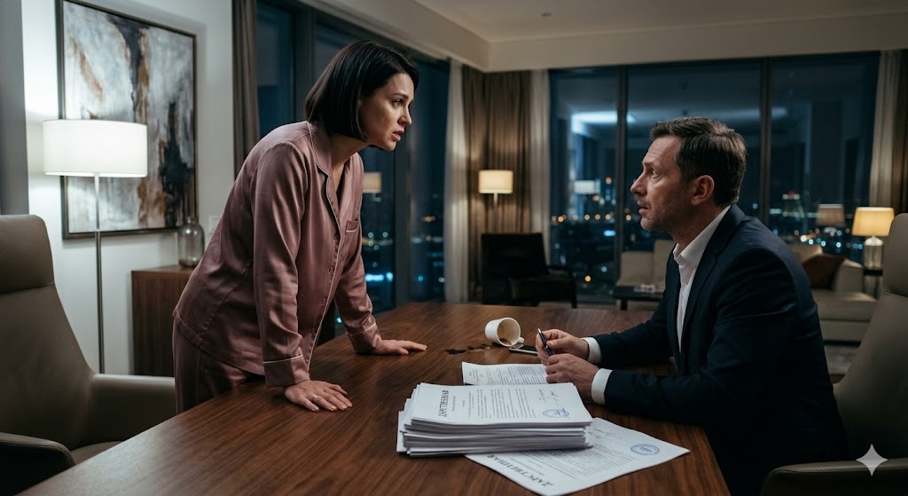 Свет в гостиной пентхауса на 42-м этаже был слишком ярким, почти хирургическим. Алиса смотрела на свое отражение в панорамном окне: тридцать четыре года, безупречное каре, шелковая пижама цвета пыльной розы и глаза, в которых застыл холодный октябрьский лед. За окном Москва рассыпалась миллионами огней, холодная и равнодушная, как и человек, сидевший напротив неё.