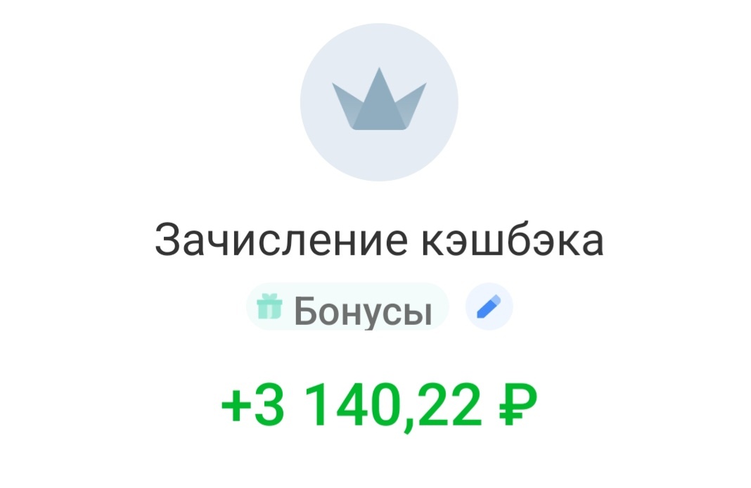 👍вторая часть кешбека - основной за месяц -тоже сумма приличная 3140 руб