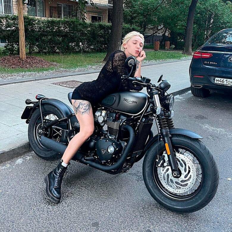 Для неё один из самых простых способов получить порцию адреналина — сесть на мотоцикл и мчать туда, куда ведёт дорога. 13 июня 2021 года она поделилась в Инстаграме кадрами, где позирует на чёрном Triumph Bonneville, который назвала своим «демоном скорости». #мотолевушки
