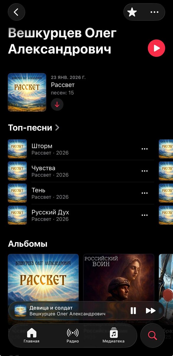 Друзья, для всех тех, кто слушает музыку в Apple Music сообщаю, что новый альбом «Рассвет» теперь можно слушать и на вашей любимой площадке