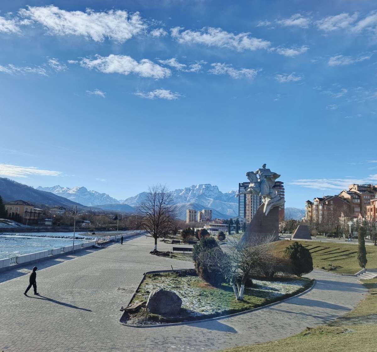 Москва провожала хмурым взглядом, мол, куда опять, заблудшее дитя. В подворонежье внезапно нас встретила весна. Так что собачка, выйдя на очередной остановке, прикинулась овцой и пошла пастись, подъедая проклюнувшуюся травку. К Ростову опять наступила зима. А Осетия вообще встретила мокрым снегом, который валил весь следующий день без остановки. И только сегодня, наконец-то на горизонте открылись горы. Я мало о чем скучаю, покинув Владикавказ, но горы - исключение. Знакомые очертания плоской вершины Столовой, раздвоенный пик Казбека в вечной снежной шапке, отвесная стена Кариу над Ходом, Згидский перевал, сосны над обрывом над Архоном... У гор есть удивительное свойство замедлять время, если кто был, наверняка замечал, что время в горах течет совершенно по-другому. Я каждый раз удивляюсь этому факту, но объяснения у меня для него нет. Но приехала я, как всегда, работать, так что на горы любуюсь только издалека. Родной архив РСО-А так и встретил, как родную. Очень была рада всех виде