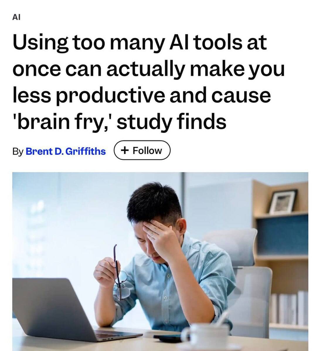 Журналисты опросили почти 1500 сотрудников крупных IT-компаний, от которых шефы требовали активно внедрять нейронки, чтобы якобы оптимизировать рабочие процессы. 🔴 На практике всё оказалось наоборот: работягам приходилось часами проверять ответы ИИ, исправлять грубые ошибки и переделывать задачи. В итоге время уходило не на работу, а на контроль нейросетей. 🔴 Продуктивность просела, а примерно 25% участников начали жаловать на проблемы со сном, мигрени, тревожность и признаки депрессивного состояния. 🔴 По словам авторов исследования, всё это снижать прибыль компаний и демотивировать команды, потому что сотрудники тратят силы не на результат, а на постоянные перепроверки ИИ. Выходим из этих токсичных отношений 😳 CtrlAltDelights- подписаться