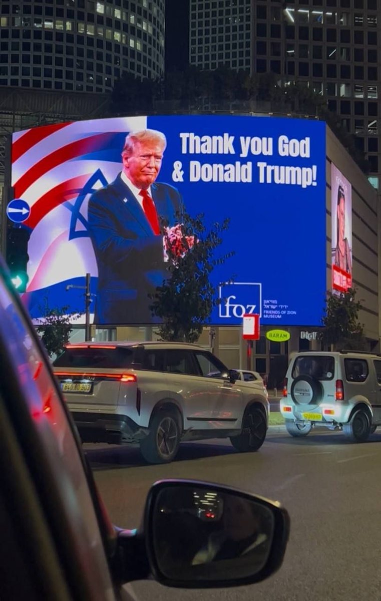 В Израиле на уличных экранах крутят видео с текстом "Спасибо тебе, Бог и Дональд Трамп".