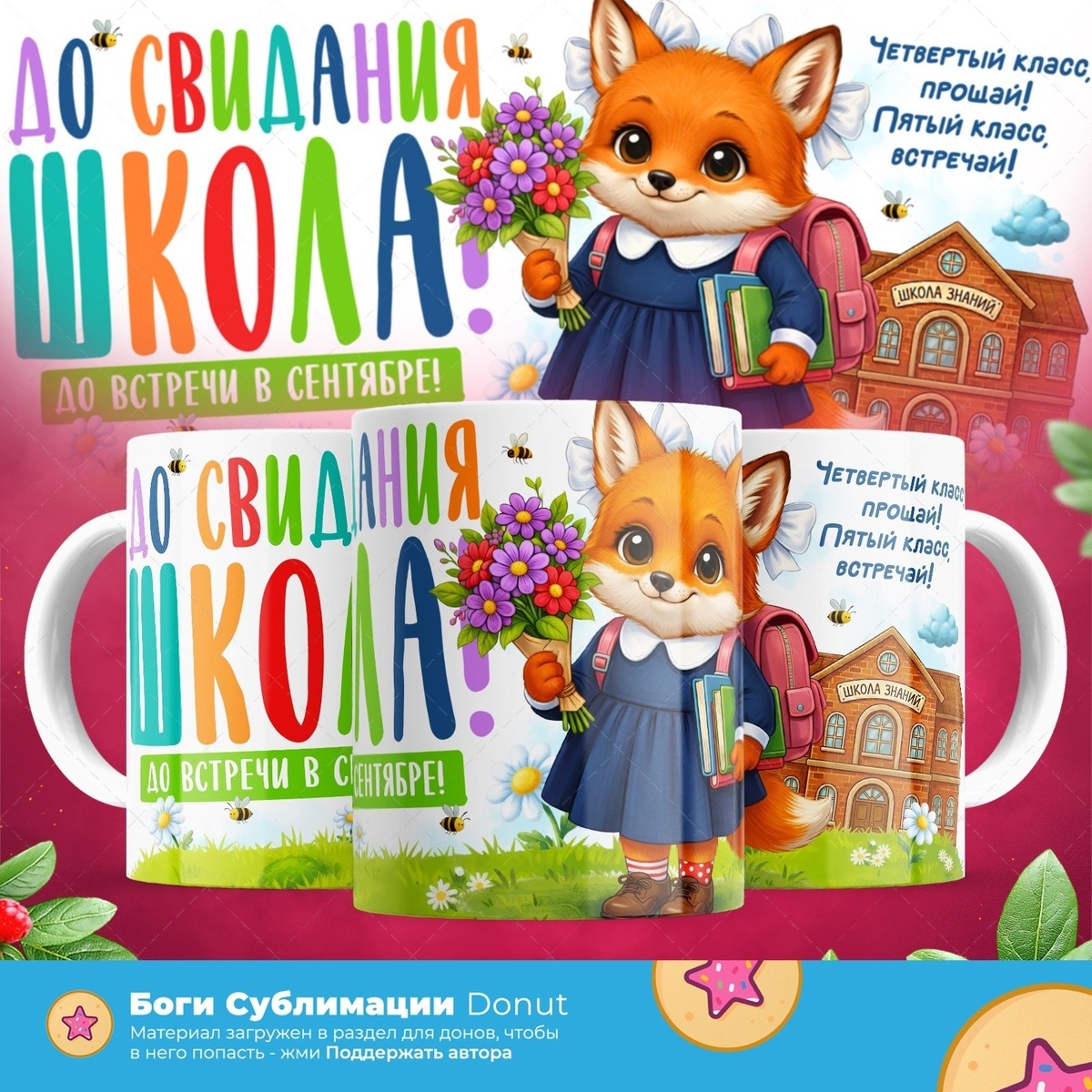 Макет на кружку До свидания, школа. До встречи в сентябре. Чтобы скачать бесплатно, поддержите нас через VK Donut