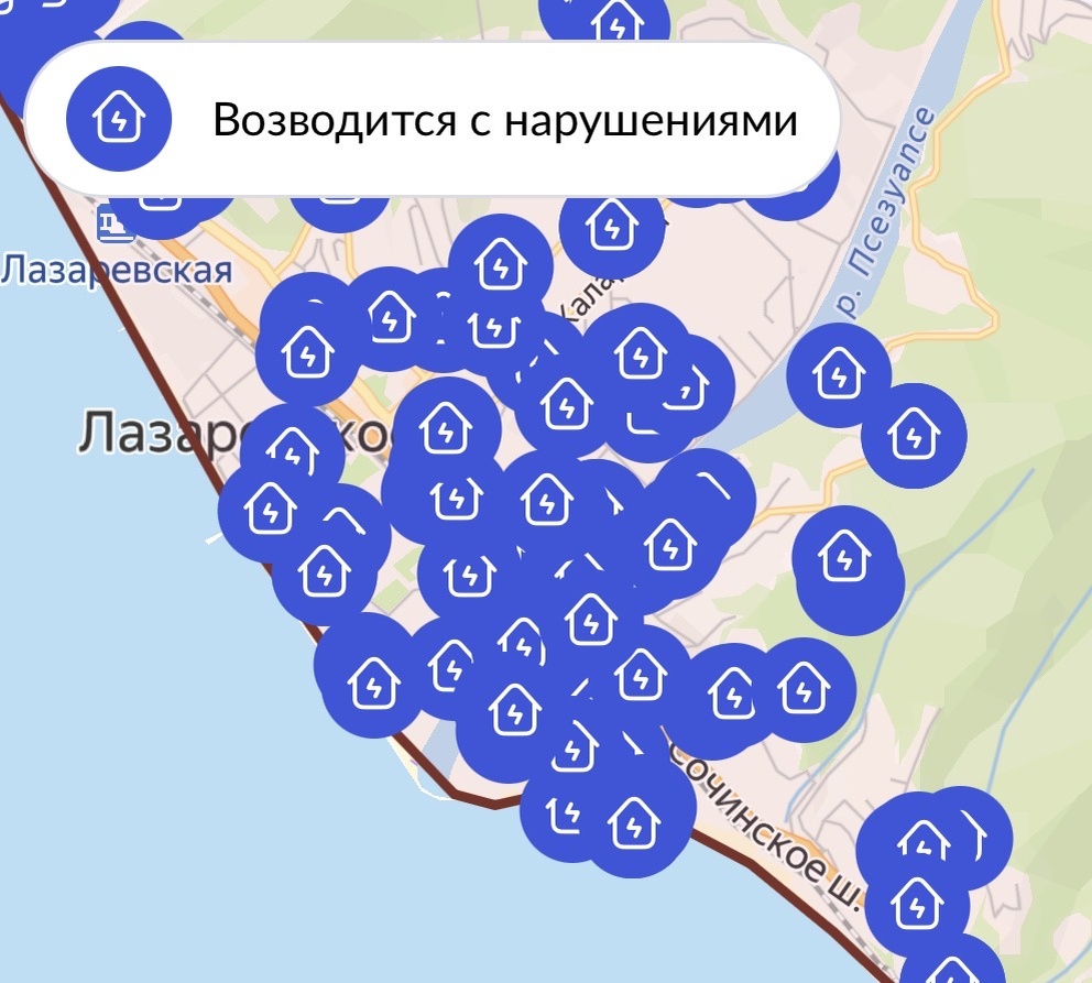 Я открыл раздел, скриншот прилагается (держите крепче стул!), и обомлел. Судя по этой карте, наш любимый город Сочи, а в частности Лазаревский район, живет в режиме «все пропало». Каждый второй домик, сарайчик, кафешка и, кажется, даже чья-то собачья будка были помечены как объекты, подлежащие сносу.