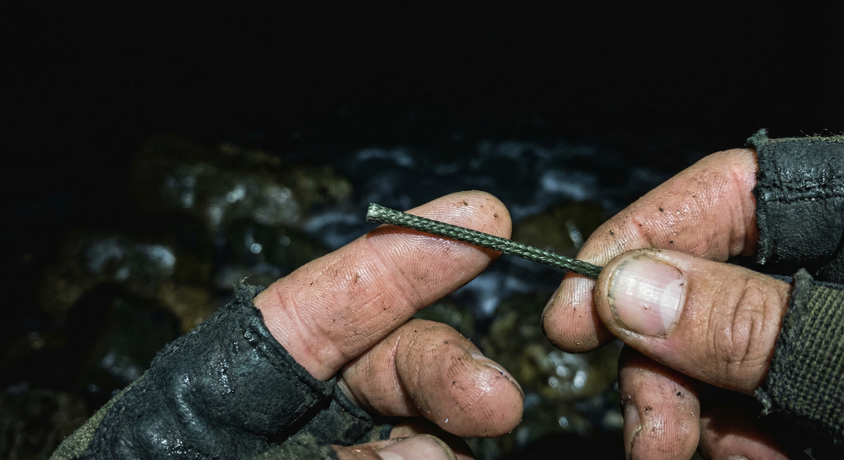 Прошло минут сорок. Внезапно звякнул колокольчик на левом удилище Сереги. Сценарий повторился один в один: резкий одиночный рывок, бланк отстреливает назад, леска падает в воду. Серега с матом выматывает снасть — и мы снова видим идеально ровный срез плетенки. Минус еще одно дорогое грузило и готовая оснастка. А это не только потерянные деньги, но и драгоценное время ночного клева, когда нужно ловить, а не вязать узлы в темноте.