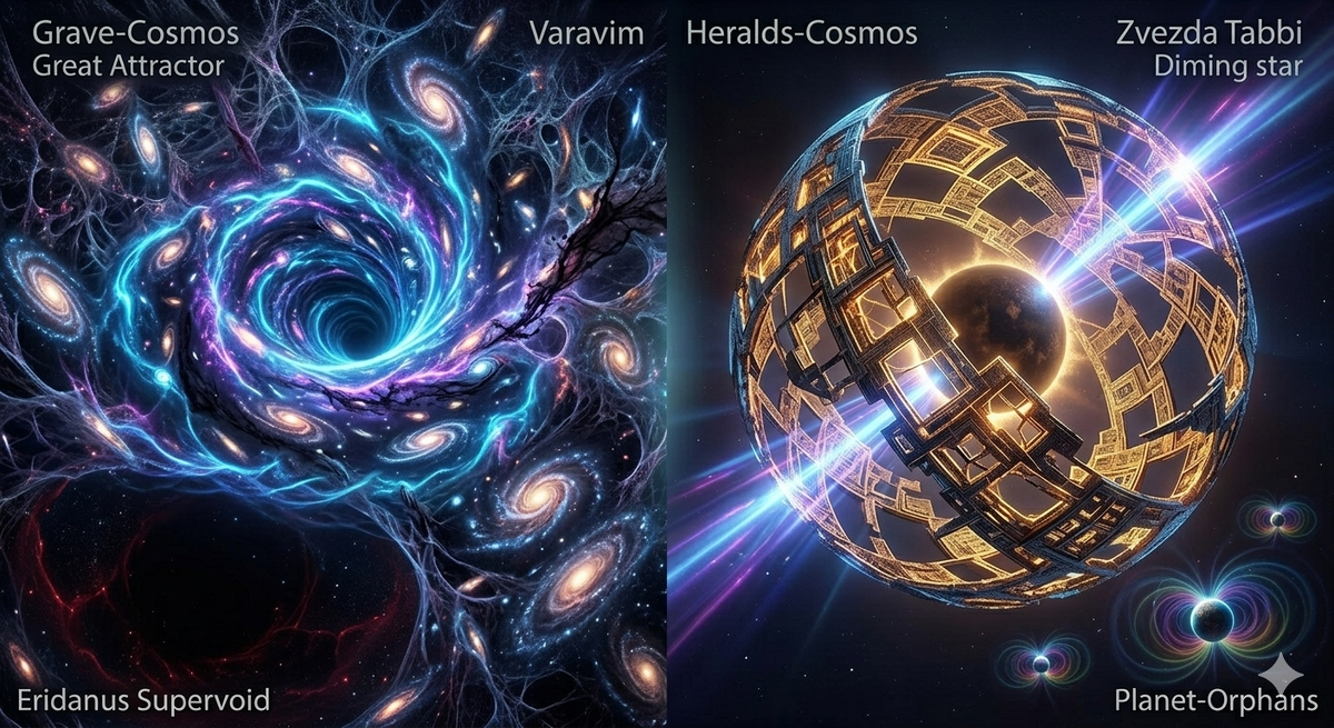 Представьте, что наша Галактика и тысячи соседних со скоростью 600 км/с летят в сторону невидимой точки в созвездии Наугольника. Эта точка называется Великий Аттрактор. Это зона сверхмассивной гравитации, скрытая от нас «зоной избегания» (пылью Млечного Пути). Мы не видим, что это, но мы точно знаем: оно нас тянет к себе.
