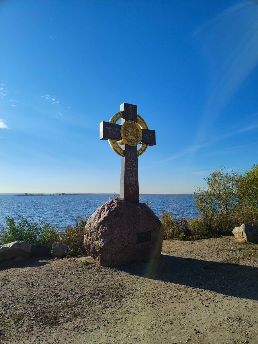 Решив утренние процедуры. Одевшись по теплее. Пошли осмотреться вокруг. Посмотреть на Ростов в дневном свете. Первой была как раз та часовня бедолага. У которой ночью устроили девичник. На против неё, у берега стоял большой, поклонный крест.