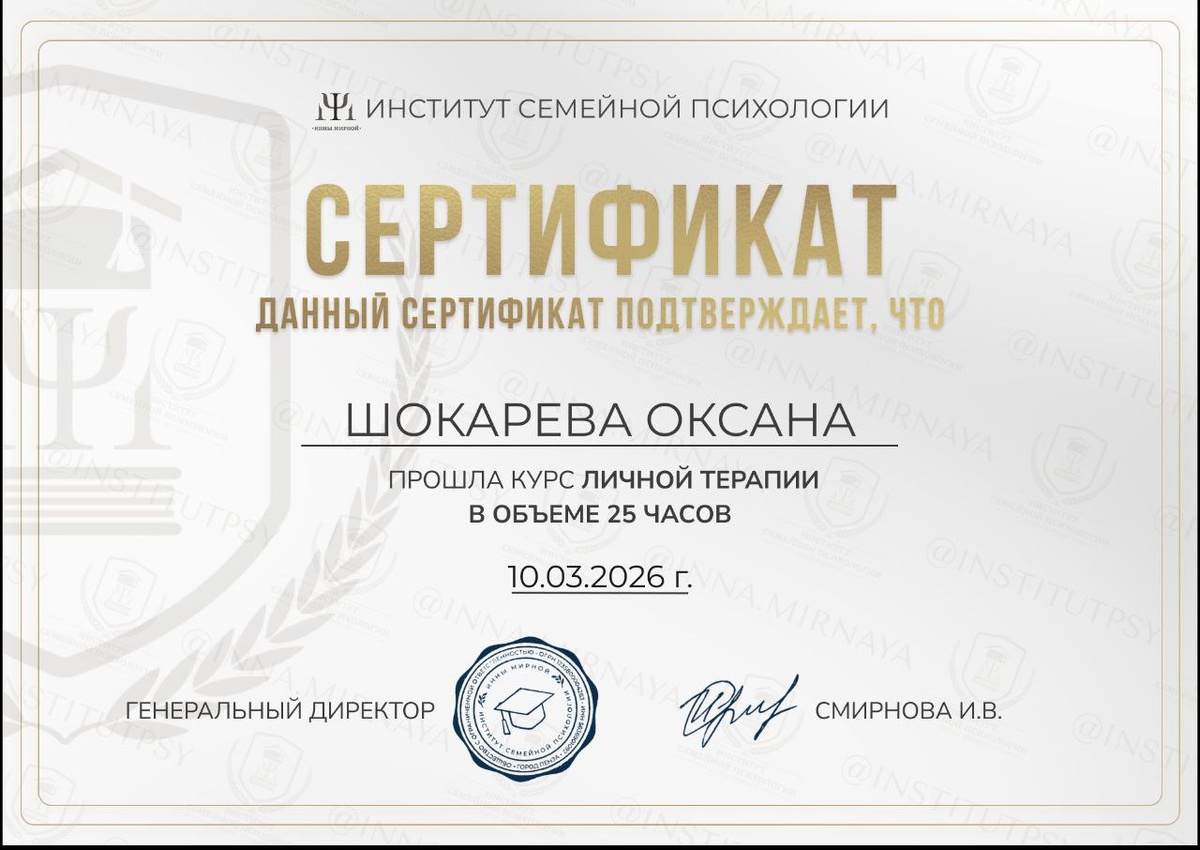 👩🎓 Завершила своё очередное обучение на этот раз по семейной психологии
