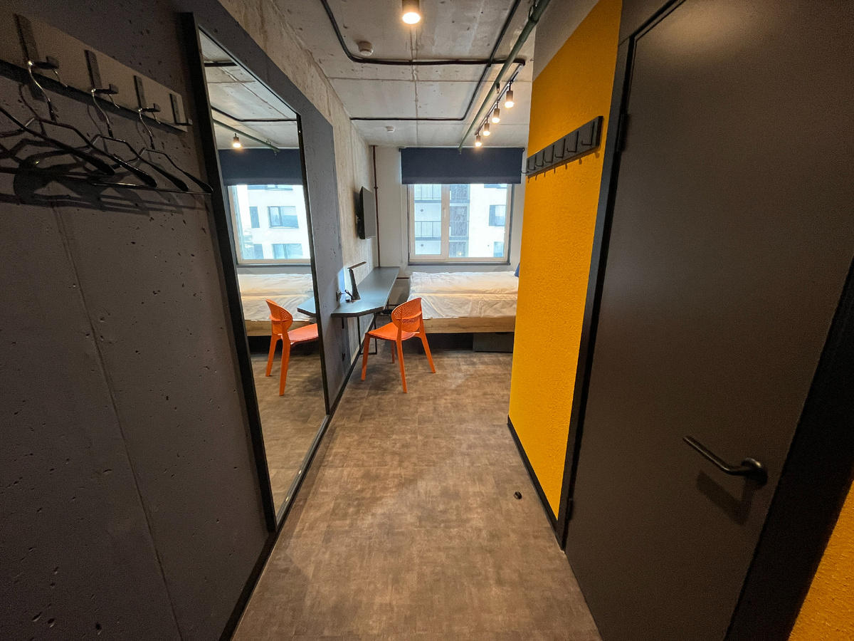 В нашем случае речь идёт о действительно очень маленьких апартаментах. Их площадь составляет всего около 15 квадратных метров. И когда попадаешь внутрь, сразу понимаешь, что пространство здесь использовано буквально до сантиметра.