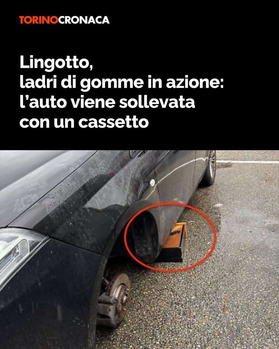✅ СПРАВКА: Эта новость переведена и размещена при помощи искусственного интеллекта Chat GPT без участия человека, в случае если вы заметили ошибку, или новость не соответствует реальному событию — сигнализируйте, исправим. 👉 Искренне Ваш Сержио Боттичелли: https://www.facebook.com/mercator.cz __________________ Кража шин была обнаружена утром на улице Корсо Кроче, в районе Линготто, перед детским садом. Неизвестные нацелились на припаркованный автомобиль, сняв передние колеса и оставив транспортное средство приподнятым на импровизированной опоре. Кроме самой кражи, особенно поражает система, использованная для выполнения операции. Судя по тому, что было установлено на месте происшествия, злоумышленники не использовали обычный домкрат или другие более распространенные опоры, такие как кирпичи или блоки. Вместо этого, по всей видимости, был использован ящик, предположительно, извлечённый из мебели или найденный в заброшенном материале в этом районе. Ящик был помещён под автомобиль,
