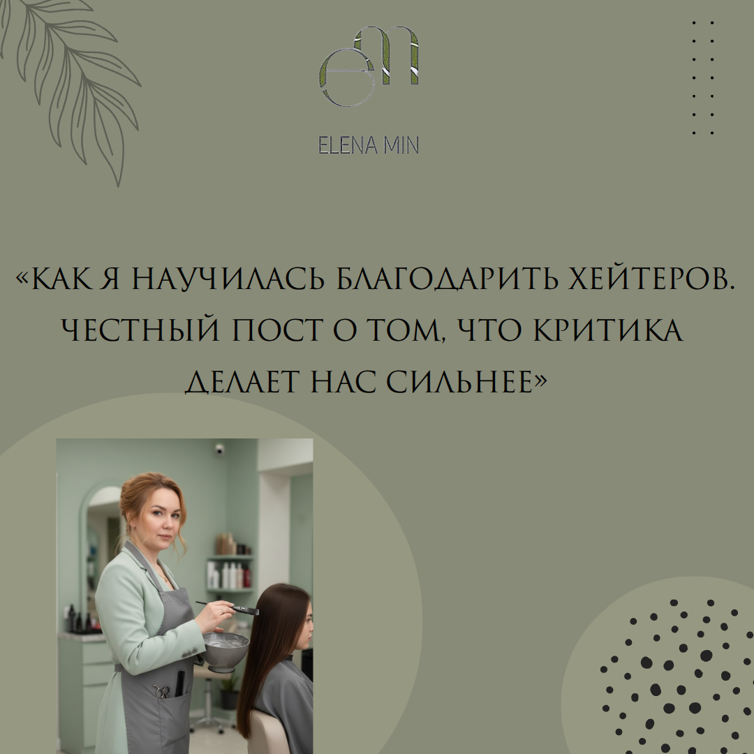 «Знаете, а ведь хейтеры на самом деле делают нам одолжение. Серьёзно. Каждый негативный комментарий — это указатель на нашу больную точку. То, что нас задевает, —это то, над чем нужно работать. Давайте разберём на примерах. Раньше меня это задевало. Я думала: "А вдруг и правда бестолковое?" А потом я поняла: это видео просто не для этого человека. Он — не моя аудитория. Он ждёт "волшебную таблетку" за 5 минут, а я даю глубину. Урок: Не надо нравиться всем. Надо нравиться своим. Этот комментарий — отличный повод объяснить, почему в классическом окрашивании нюанс вымывается, а в системе пенных бань — нет. Урок: Хейт даёт нам темы для контента. Каждый негативный комментарий — это готовая идея для поста или видео. Про "серую мышь" мне писали под работой в сложном припыленном оттенке. Для кого-то это "серость", а для меня — "винтажный, благородный цвет". Урок: Вкусы у всех разные. Ваша задача — найти тех, кому ваш почерк откликается, и работать для них. Этот комментарий — про ценность. Кто-