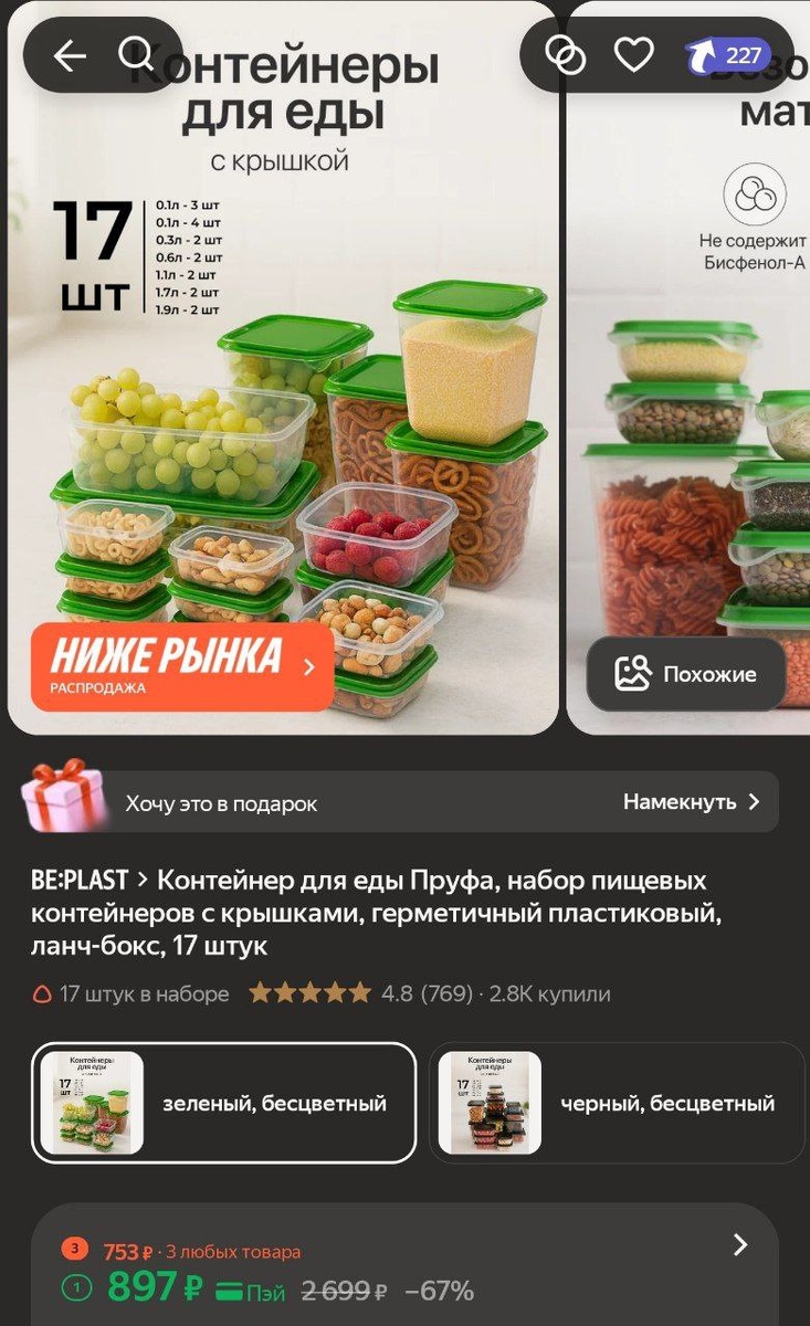 🔥 Контейнер для еды Пруфа, набор пищевых контейнеров с крышками, герметичный пластиковый, ланч-бокс, 17 штук