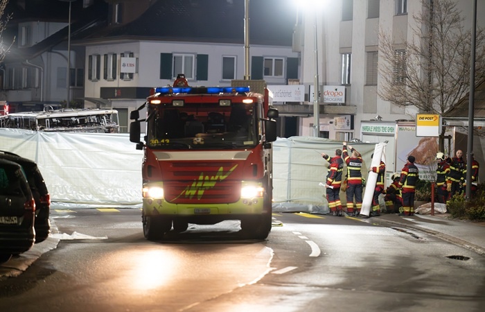 Москва. 11 марта. INTERFAX.RU - По меньшей мере шесть человек погибли в результате пожара в автобусе в городе Керцерс на западе Швейцарии, еще трое госпитализированы, сообщает AP со ссылкой на местную полицию.По словам представителя полиции Фредерика Папо, возгорание произошло вечером во вторник. Он отметил, что рассматривается версия об "умышленном акте", однако окончательные выводы будут сделаны после завершения расследования.Сгоревший автобус принадлежал компании PostBus, входящей в структуру национальной почтовой службы. Швейцарские СМИ опубликовали кадры, на которых видно, что транспортное средство полностью охвачено огнем."Прибывшие на место спасательные службы обнаружили автобус полностью в огне", - говорится в заявлении регионального правительства.По данным полиции, трое пострадавших с тяжелыми травмами были доставлены в больницы, еще двум пострадавшим помощь оказали на месте. Прокуратура начала уголовное расследование для выяснения обстоятельств трагедии.