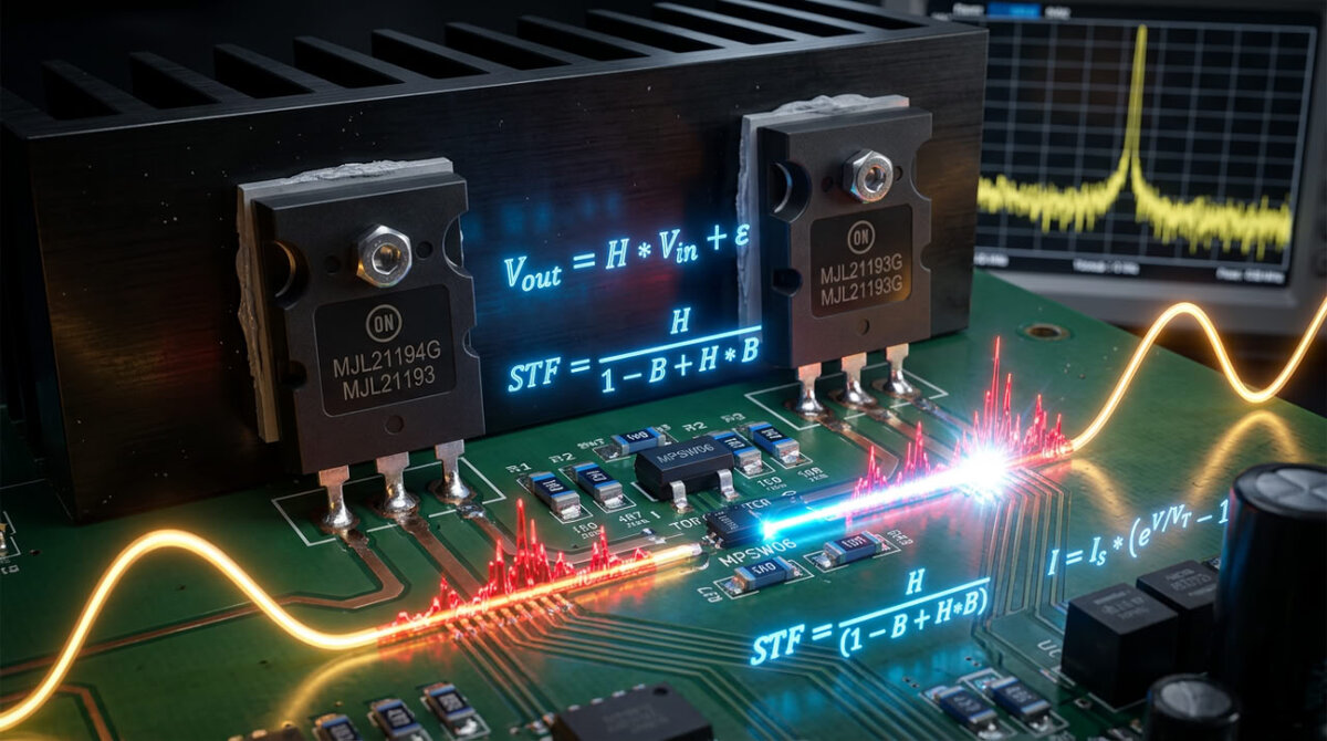 Нелинейность транзистора не спрашивает разрешения. Она просто есть, встроена в физику p-n-перехода так же неустранимо, как трение встроено в механику. Каждый раз, когда выходной каскад усилителя берётся воспроизвести сигнал, он неизбежно чуть искажает его форму. Немного добавляет там, где должен точно повторять. Немного запаздывает там, где обязан двигаться без промедления. В схемотехнике это называется нелинейными искажениями, и их природа уходит корнями в уравнение Шокли для p-n-перехода: