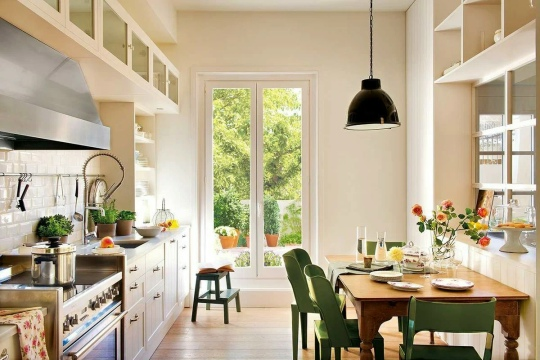 Акцентные стены — еще один недорогой и эффектный способ изменить облик кухни. Перед началом покраски важно выбрать цвет, который будет несложно перекрасить, если вы решите продать квартиру. Также следует избегать темных цветов, если только все остальное на кухне не т