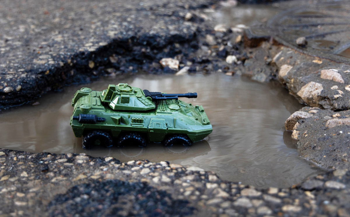 Читатели пишут: «Асфальт в этом году сошел вместе со снегом!» — и отправили Myslo в танковый рейд. В Тулу наконец пришла весна. Под солнцем залежи снега активно тают, открывая всю «красоту» побитого после зимы асфальта. В редакцию Myslo активно поступают жалобы от тульских водителей на обилие ям. Редакция выехала на улицы разных районов Тулы, чтобы проверить состояние дорог. А на чем еще ехать, как не на танке! Пусть даже на пластиковом и небольшом (строго говоря, это бронетранспортёр, но давайте сделаем скидку на то, что автор может не полностью разбираться в «мужской» технике. — Прим. ред.). Вчера на оперативном совещании в «белом доме» губернатор потребовал от министра транспорта и дорожного хозяйства «отчитаться за каждую яму». Особое внимание — участкам дорог, на которые больше всего жаловались. Туда и поедем! Улица Руднева. Как вы можете видеть на фото, дорожное полотно сильно повреждено в местах прокладки трамвайных рельсов, из-за этого автомобилисты движутся по проезжей части,