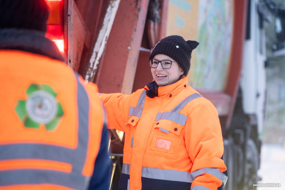 Во дворах Витебска мусоровозы появляются каждый день, и обычно на них никто не обращает внимания: подъехала машина, выгрузили контейнеры — и поехали дальше. Но стоит за рулем оказаться 27-летней Анастасии, как ситуация кардинально меняется: прохожие достают телефоны, фотографируют и даже иногда подходят познакомиться. Мы поговорили с девушкой о работе на городских маршрутах, первой серьезной аварии, необычных находках в мусорных баках и популярности в TikTok.