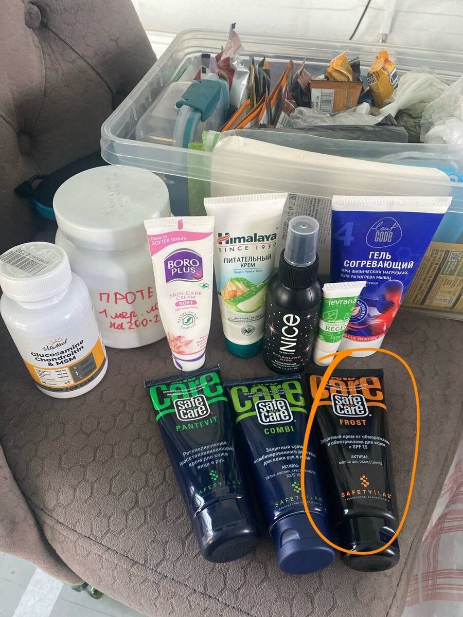 !🙏🏻 Начали с Combi. К ночи решили, что его недостаточно. И перешли на защитный крем от обморожения и обветривания Frost (не знаю где его найти, Виктору выдали на работе)💥 Из плюшек, что он ещё с spf. А солнце ведь у нас тоже светило! Наносила средним слоем (чтобы после впитывания все равно оставалась белая пленка на лице) каждые (!!!) 2-3-максимум 4 круга. Обновляла, когда видела малейшее покраснение после нового круга. Дополнительно ещё жирненький бальзам для губ. У меня был с собой от Леврана, но это вообще не рекомендация👎🏻 Самый классный для меня бальзам для губ, универсальный, это Carmex 👍🏻 Для ног в этот раз использовали только Бенгей и жидкий тальк. Их ещё ДО того, как появляются даже первые симптомы в их необходимости. Про это ещё наверное отдельно стоит сделать пост 🤔 про ноги можно ооочень много рассказывать))) С собой ещё был парфюм для интерьера «с ароматом праздника и волшебства» (даже не спрашивайте зачем) 😂😂😂 под настроение некоторых кругов я распыляла на